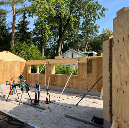 Onze bouwmaterialen, zoals hout en stro, vormen de basis voor duurzame constructies die bijdragen aan een circulaire economie met minder CO₂-uitstoot en hernieuwbare grondstoffen.